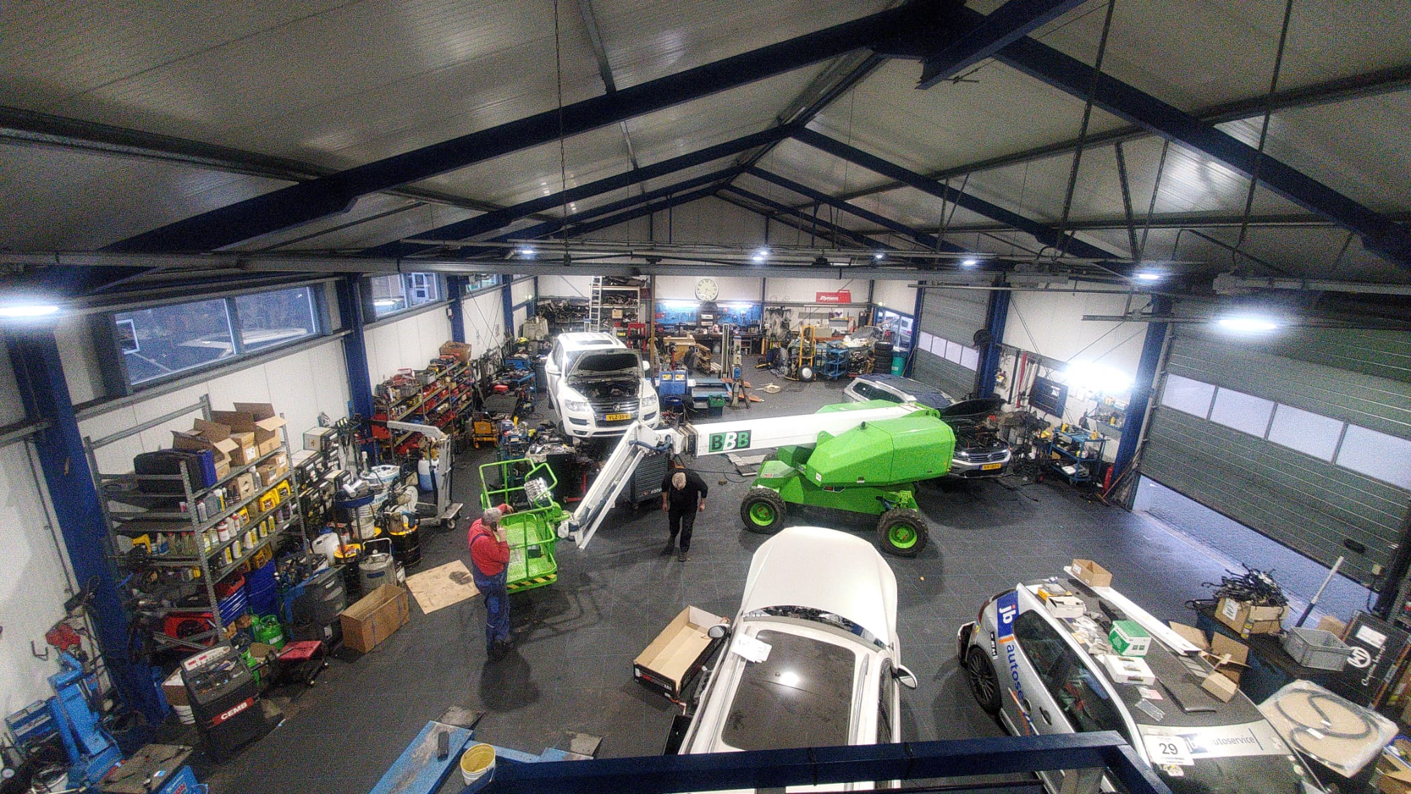 Effe een ander dagje, vandaag led verlichting geplaatst. Zelf gedaan aangezien er dan geen verlet is qua werkdag, en er dus niemand aanwezig is. Samen met een paar kameraden de lampen geplaatst, en van de buren een hoogwerker mogen gebruiken. Maar wat een bak licht heb je daarvan!