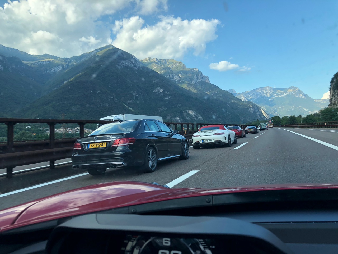 Ja dat was eigenlijk geen enkel probleem. Acceleratie en tussensprintjes is de 4C erg snel, doet ie niet onder voor deze jongens (in de praktijk samen oprijden, in theorie of met stopwatch wellicht ander verhaal). Eigenlijk niet normaal dat je 600+pk auto's bij kunt houden. Bergpassen en binnendoor natuurlijk top, dan hang je gewoon de hele tijd in de achterbumper van je voorganger. Alleen snelheden boven de 200 begint het spannend te worden. Niet eens zozeer qua snelheid, maar meer het karakter van de auto/onderstel. Met m'n vorige auto's waren dat soort snelheden niet spannend, de 4C is best gevoelig voor gaten in het wegdek en spoorvorming. Soms zit er iets raars in het wegdek en springt de hele auto een halve of hele meter opzij. Ik kan het niet helemaal verklaren (wellicht omdat ie zo licht is?), maar 200+, zeker op de smallere wegen, is best zweten en opletten. Ik heb volgens mij twee keer gas moeten lossen: één keer op een smalle weg langs het water (zie iPhone foto's), bij 220 werd mij dat wat te lijp. En een keer op de Autobahn terwijl ik al een paar honderd kilometer had gereden en merkte wat vermoeid te zijn.Knot schreef: 11 sep 2018, 18:59 4C is niet bepaald kinderachtig maar de rest nog net wat grover.. kon je het wel een beetje bijtrekken rechtuit?